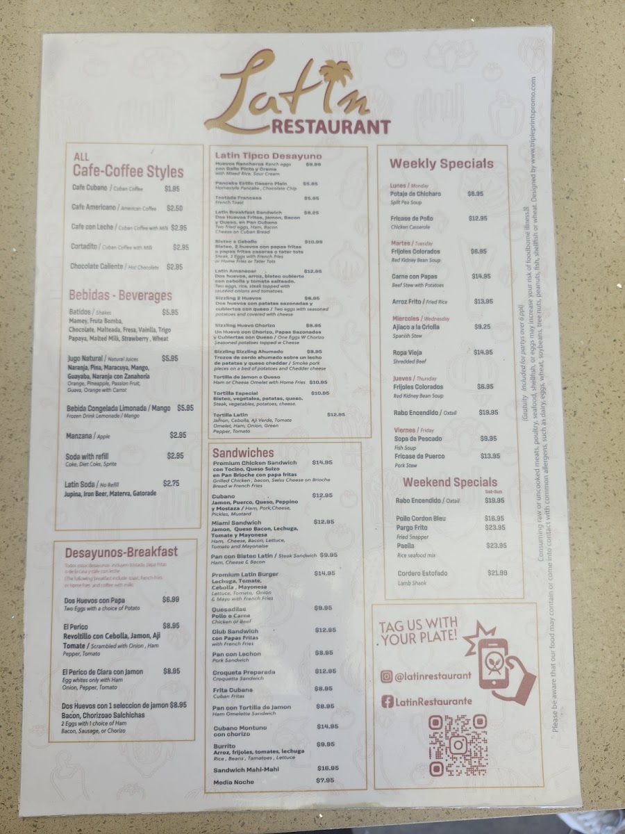 Whether you’re a first-time visitor like Jacob Melby, who raved about the massive portions and friendly service, or a long-time patron, you’ll find that Latin Restaurant offers more than just food; it offers an experience steeped in flavor and community. Call us at (305) 223-3329 to enjoy a journey of tastes that will leave you wanting more. Join us at Latin Restaurant—where every meal is a celebration, and everyone is family!